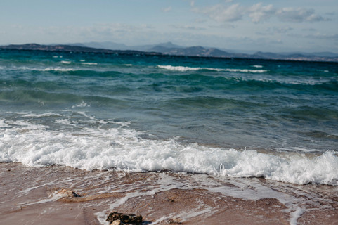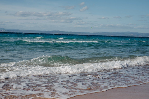 Je suis restée un moment ici, toute seule, comme ça arrive souvent lorsque je pars en groupe, pour profiter d'un moment de contemplation, de ces vagues poussées par un vent vif, cette transparence et les dégradés de couleurs, les mouettes qui s'amusaient dans l'air, les montagnes et leurs reliefs au loin, cette odeur si particulière de la mer, et ce ciel bleu en harmonie avec l'eau.