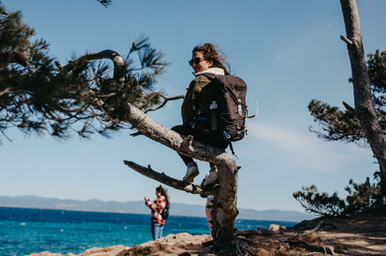 Après une longue promenade vallonée et quelques courbatures plus tard (j'avais oublié à quel point ça monte et ça descend Porquerolles !!) nous nous sommes arrêtées pour pique-niquer sur une très jolie plage à l'abri du vent, les pieds dans l'eau. De l'autre côté de cette plage, nous sommes allées faire quelques photos devant le fort, les cheveux en bataille mais les coeurs lumineux, heureuses d'être ici, loin de tout ! Pendant le repas, je me suis surprise à admirer au loin un couple avec leur tout petit bébé, apprenant à faire ses premiers pas sur la plage, le papa qui jouait avec lui en le soulevant dès qu'une vague arrivait, mes habitudes de photographe de famille criaient fort au fond de moi, j'avais tellement envie de les rejoindre et immortaliser ces moments si précieux !