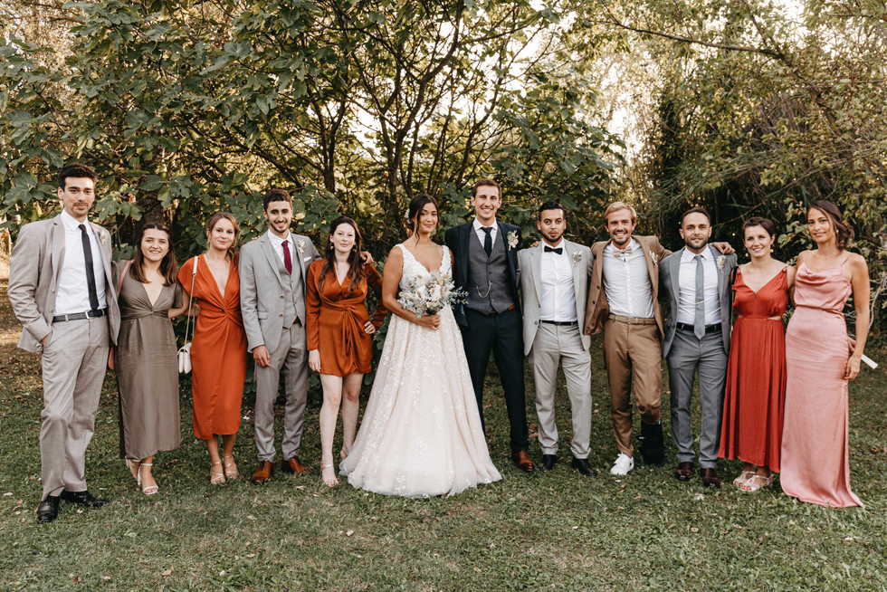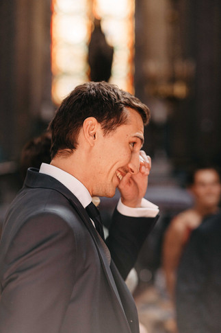 Nous sommes donc vites partis en direction de l'Eglise des Carmes à Avignon avec Benoit (et mon classique mal au ventre de stress, je relève sa petite phrase qui m'a bien fait rire, "je crois qu'il n'y a pas un mariage où tu ne m'as pas dit que tu avais mal au ventre !" et c'est tellement vrai, j'ai malheureusement un stress qui se manifeste de cette manière, donc j'apprends à faire avec surtout sur les mariages où l'angoisse est bien présente, je dois avoir un côté maso 😂) Mais comme toujours, une fois sur place, arrivée avant la mariée, le stress retombe et je redeviens opérationnelle ! Nous avons donc retrouvé Samuel qui était déjà sur le parvis pour faire patienter les invités, les garçons et demoiselles d'honneur habillés dans les tons neutres et terracotta, tous très beaux et impatients de voir Laura arriver.