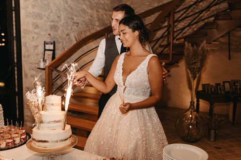 Après un long cocktail dehors, une tireuse à bières qui s'est avérée très utile, et une danse endiablée sous les scintillants, nos mariés sont entrés en salle pour y faire leur discours et remercier leurs proches. Tout le monde était en folie, n'attendait que le feu vert pour danser (notamment sur la fameuse chanson Zumba Caféw de Bande organisée, la chanson de l'été 2021 😂, grâce à la maman de Sam qui a mis l'ambiance grâce à son discours très rythmé !)