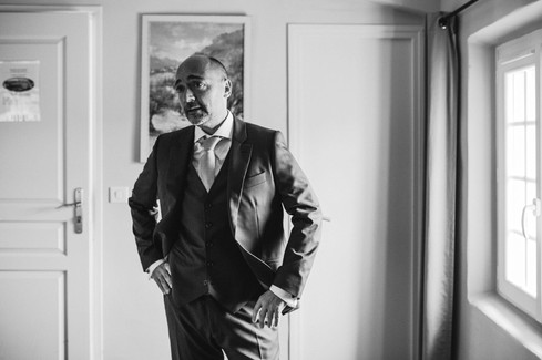 J'ai donc retrouvé mes mariés chouchou le mardi matin, pour les préparatifs des deux amoureux directement au Domaine. Il faisait tellement bon, le temps était doux, quoi qu'un peu voilé, mais la bonne humeur était au rendez-vous, surtout pour eux qui avaient déjà bien fait la fête la veille avec les personnes déjà sur place 😇Après avoir vadrouillé entre les deux différentes pièces pour les préparatifs, Leslie coiffée par Charlène de Imp'hairial, et ornée des fleurs de Maty Fleurs, nous avons organisé un petit instant "first look" entre les deux amoureux, qui a été très émouvant, et je vous préviens accrochez-vous car des larmes de joie et d'émotions, il va y en avoir !
